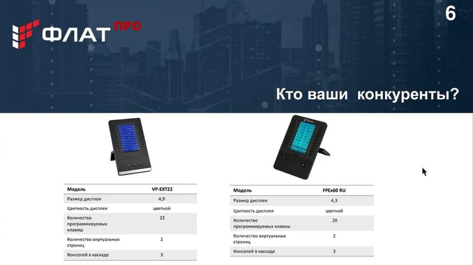 As for expansion consoles, ELTEX has an unconditional advantage here, they have 22 BLF keys, we have 20 on the console, so if it is fundamentally important for the customer to get two more keys, we can understand them somewhere.