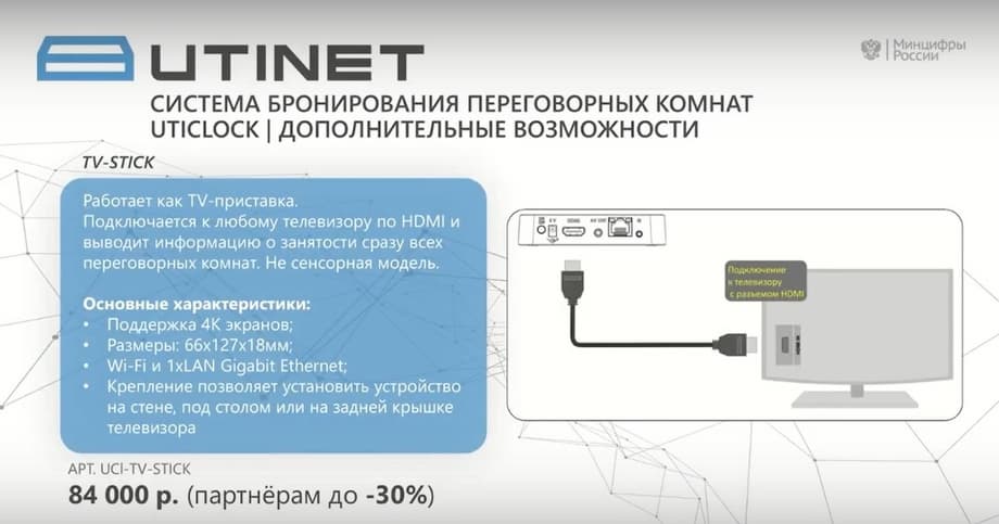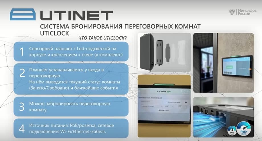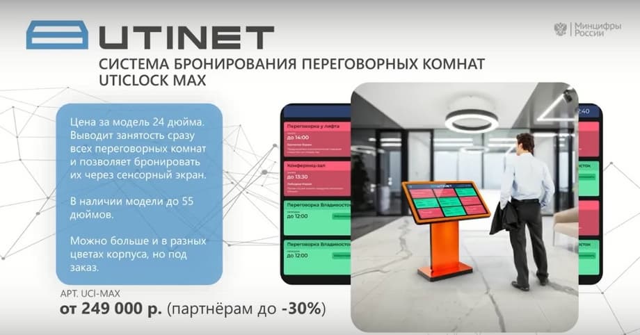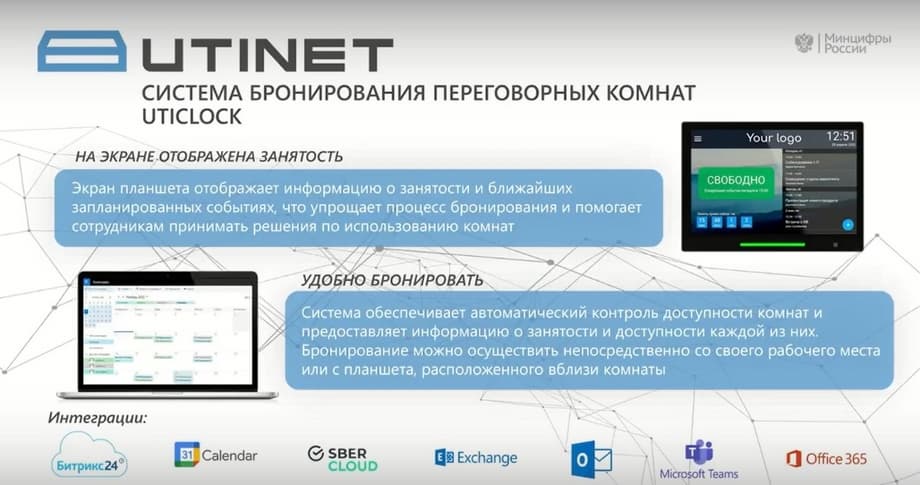 UTINET has a negotiation room booking system in its portfolio. It is called UTICLOCK. The software was developed by our company and is in the Ministry of Digital Development register.