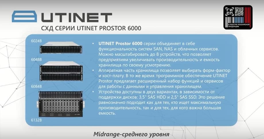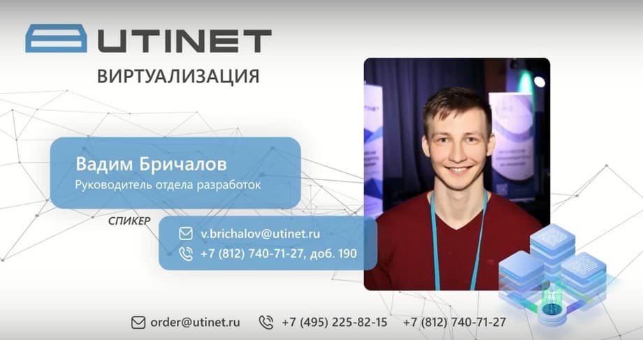 Event of UTINET, a Russian manufacturer of servers, data storage systems, and software. Representatives of the vendor talked about solutions that are assembled on the basis of domestic components and their own software. The online meeting was attended by: Vadim Brichalov, Head of Development Department, Pavel Lykov, Head of Presales Department, and Denis Voblikov, Product Manager.