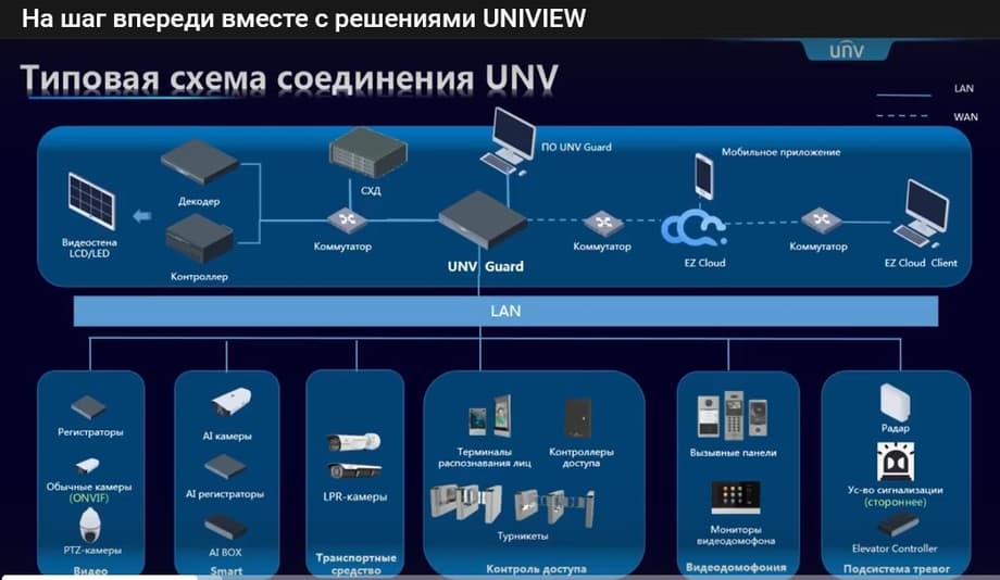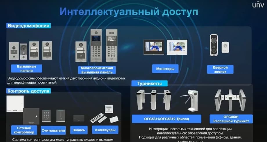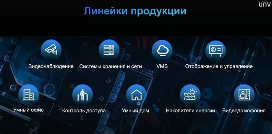 Also access control, smart home. Energy, yes, by the way, Uniview since 2024 has also become a company that deals with energy and develops its own solutions for energy storage, solar panels. And plus, of course, we have video intercoms, which will be presented, I hope, this year in the form of end devices.