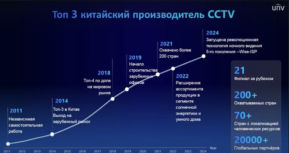 In 3 years, we were already ranked 3rd in China. In 4 years, we were already ranked 4th in the world. In 2021, Uniview sold its products in over 200 countries. In 2024, Uniview launched a new 5th generation night vision technology – Wise-ISP.