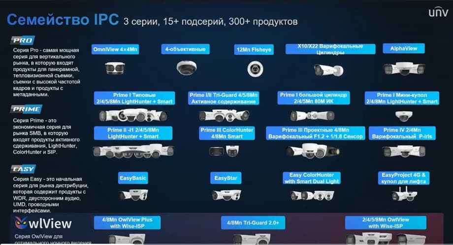 Like any vendor, Uniview also has a certain categorization by the level of its products. We have the Easy series and the Prime and Pro series.
