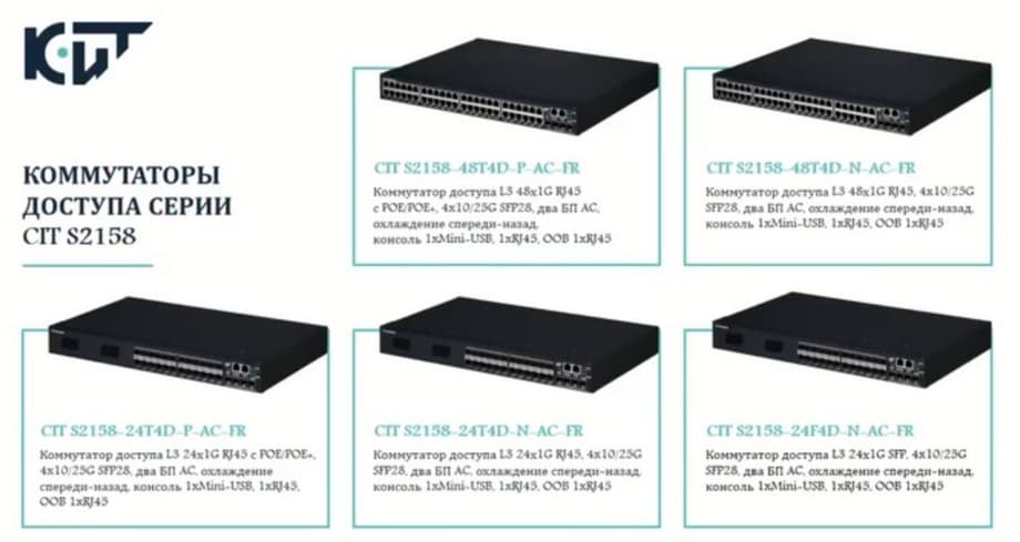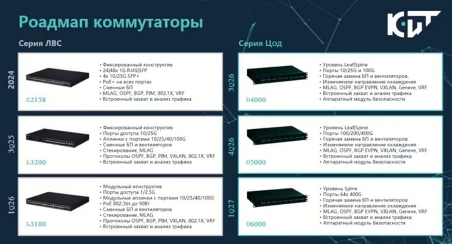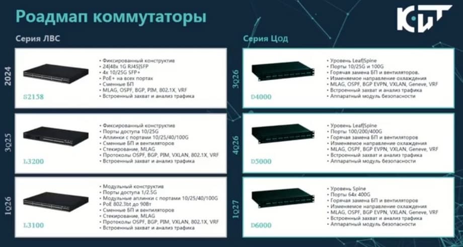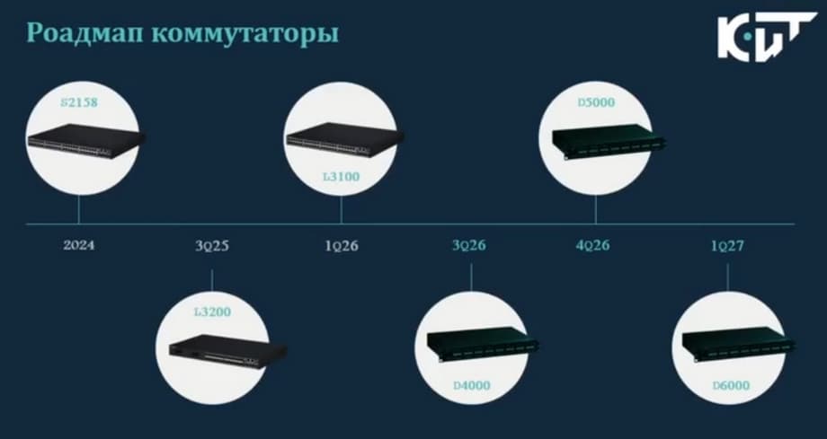 What do we have right now? As I said, right now there is one line. These are corporate network switches, LAN office networks, S2158 series. Five models. In October-November, we should have the L3200 series. These are 10-gigabit core switches, up to one hundred gigabits. In the second quarter of 2025, we will have a more interesting series of L3100 switches.