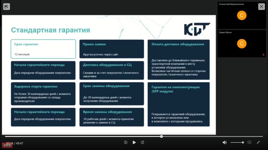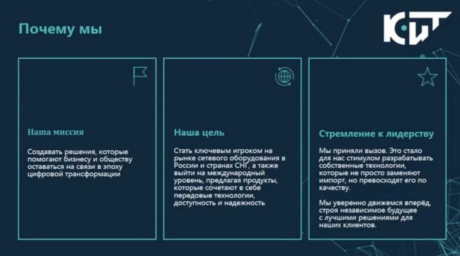 Event of KIT company, a Russian developer and manufacturer of network equipment. The vendor's solutions are included in the registers of the Ministry of Industry and Trade and the Ministry of Digital Development, comply with the requirements of Government Decree No. 878, Government Decree No. 719 and are suitable for CII facilities. The meeting was attended by.