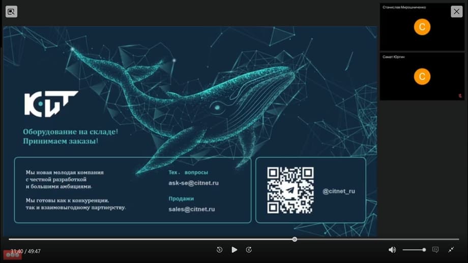 Sales have started, the order of the Ministry of Industry and Trade has been received. By and large, we are now only waiting to receive the number itself and the entry in the information systems, public records, so that you can go to the register and see all this. Naturally, we are ready to help partners in conducting our expertise. I always have a question, show me at least one vendor who says that no, we are not ready to tell you how our product works and how to operate it. Therefore, we are ready, there are people, contact us, write, consult, we will tell you, suggest, if necessary, redirect you to technical support, involve them.