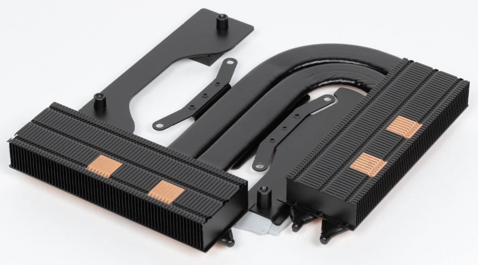 The cooling system includes a radial fan, heat pipes, a heat sink module and two radiators.