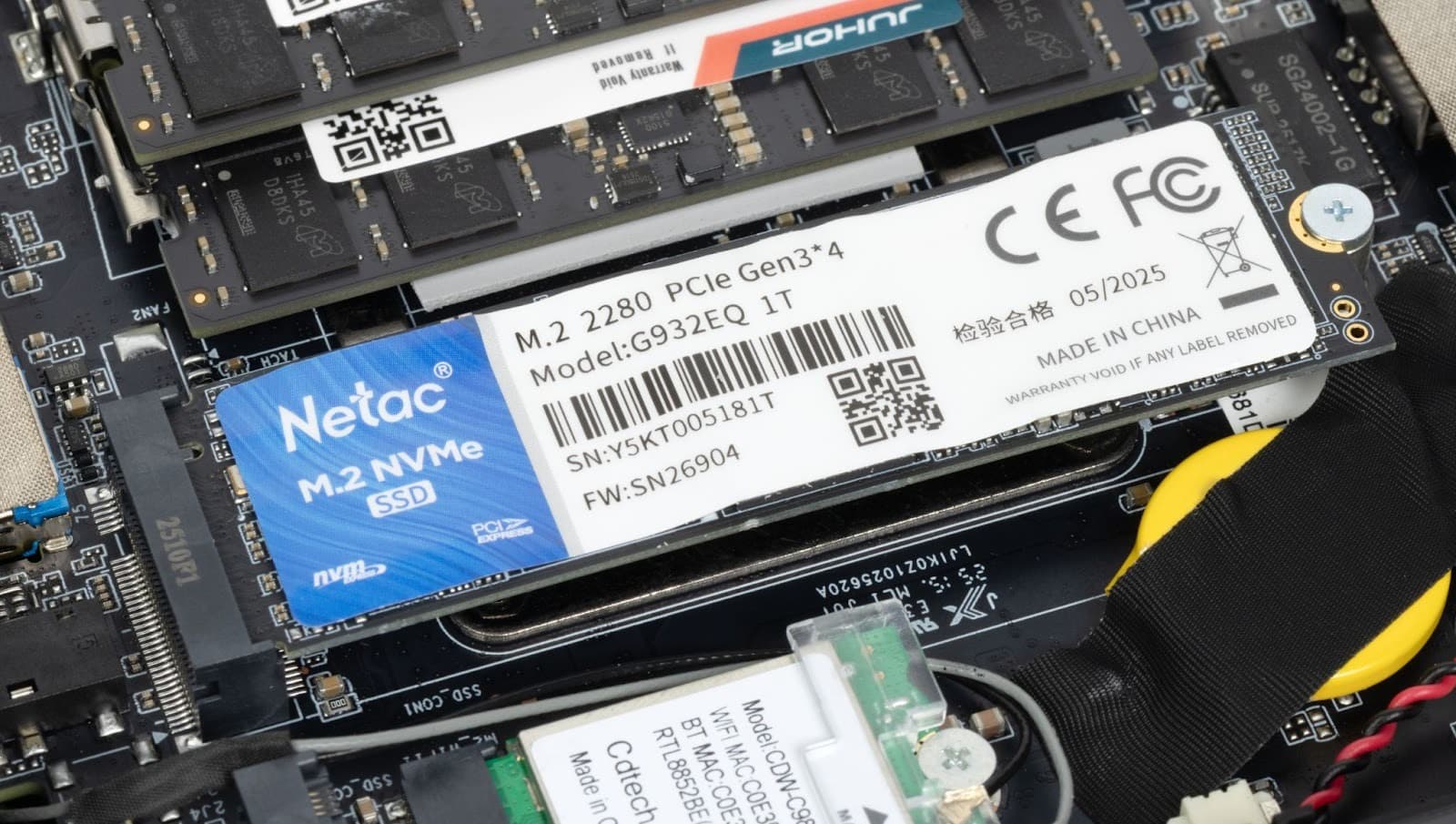 Drive: Netac G932EQ, 1TB, M.2 NVMe SSD (PCIe Gen3 x4, 2280).