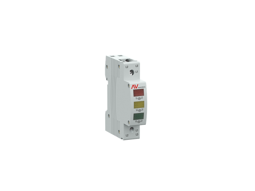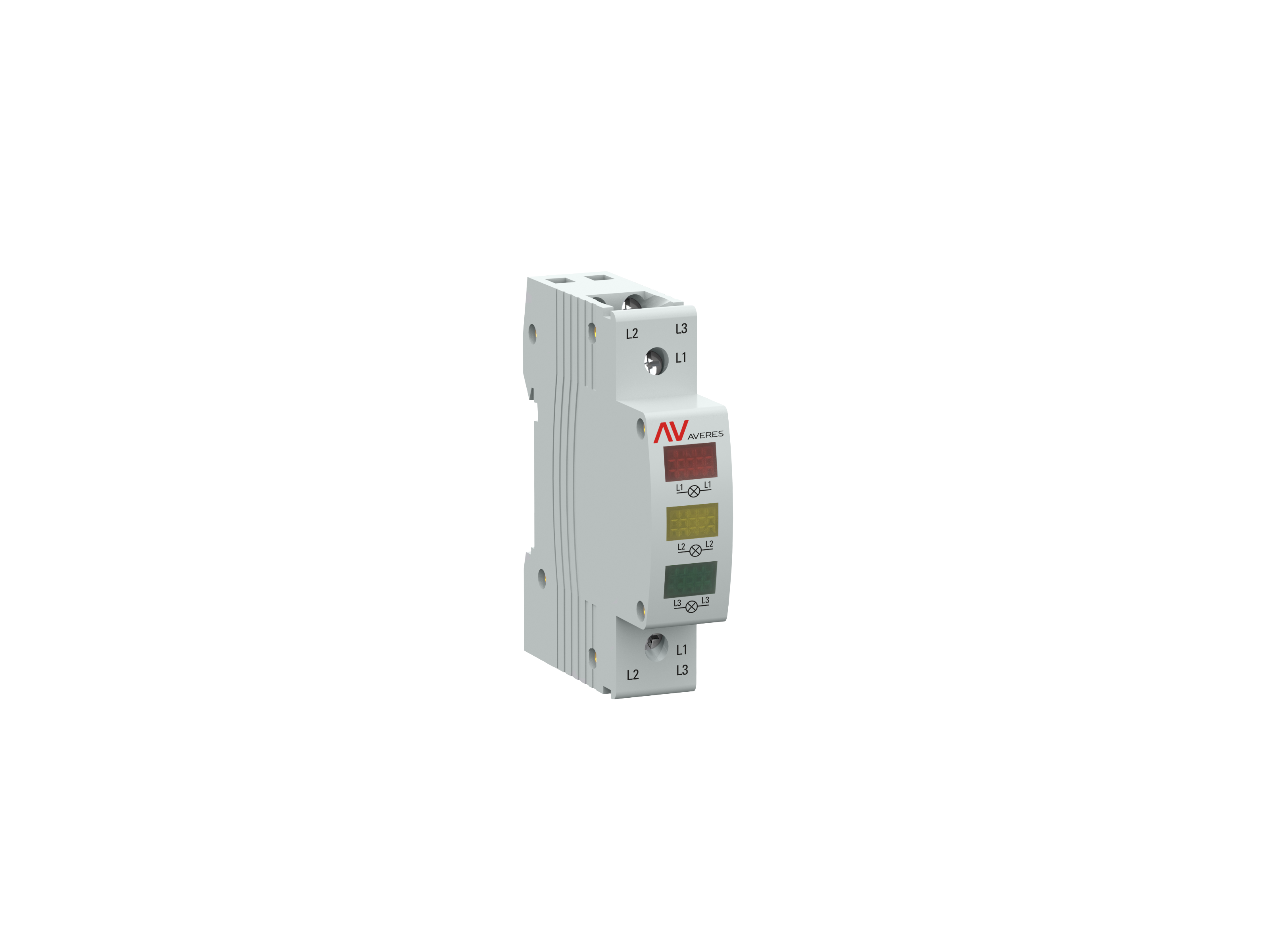 The three-phase voltage indicator AV-L EKF AVERES is designed to control the voltage in the circuit. The novelty is made of non-combustible polycarbonate. Its distinctive feature is three alarm lamps in one device. This saves space in the panel.
