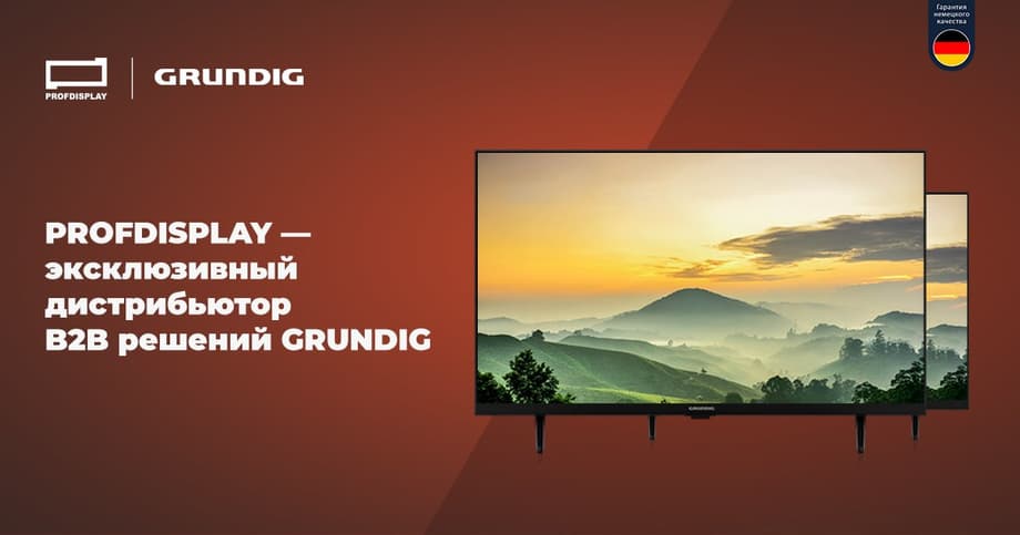 PROFDISPLAY, a distributor of professional AV equipment, becomes the exclusive supplier of hospitality TV solutions from Grundig in the Russian market. Currently, the company's portfolio includes frameless hospitality TVs from the manufacturer with screen diagonals ranging from 32 to 75 inches: HD/FHD 500 series and UHD 600 series.