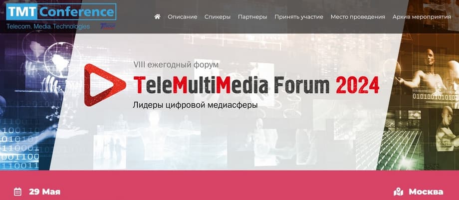 On May 29, the VIII annual "TeleMultiMedia Forum 2024: Digital Media Leaders" will traditionally bring together leaders in the production and distribution of media content, professionals in the creation and development of digital services and entertainment, representatives of digital ecosystems based on media content, and experts in the delivery of content and security of its distribution in the digital environment.