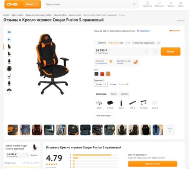 This is our Fusion S gaming chair model in fabric. It costs only 14,999 rubles, is exclusively represented in the DNS network and has collected a lot of satisfied users over the year of sales Buy Gaming chair Cougar Fusion S orange in the DNS online store. Characteristics, price Cougar Fusion S | 5094325. (dns-shop.ru):