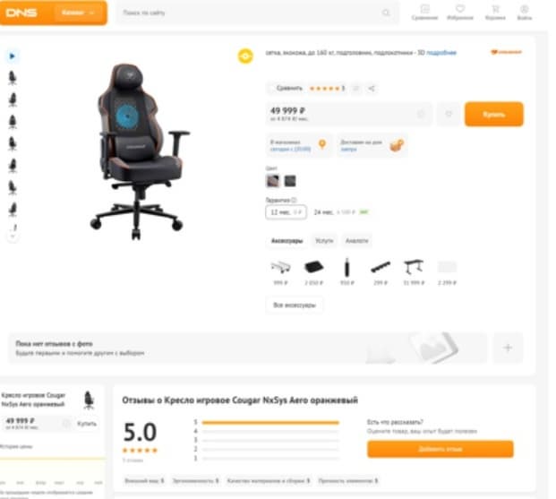 Surprisingly, but, unfortunately, the model with active cooling has not been as popular as we initially expected. It is noteworthy that on the retailer's website we see that buyers of this model leave very high reviews, but alas, there are not many of them: Customer reviews about Gaming chair Cougar NxSys Aero orange | 5433165. DNS online store. (dns-shop.ru)