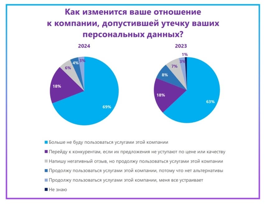 In 2024, 69% of respondents said that they would not use the services of a company that had leaked personal data, which is six percentage points more than in 2023.