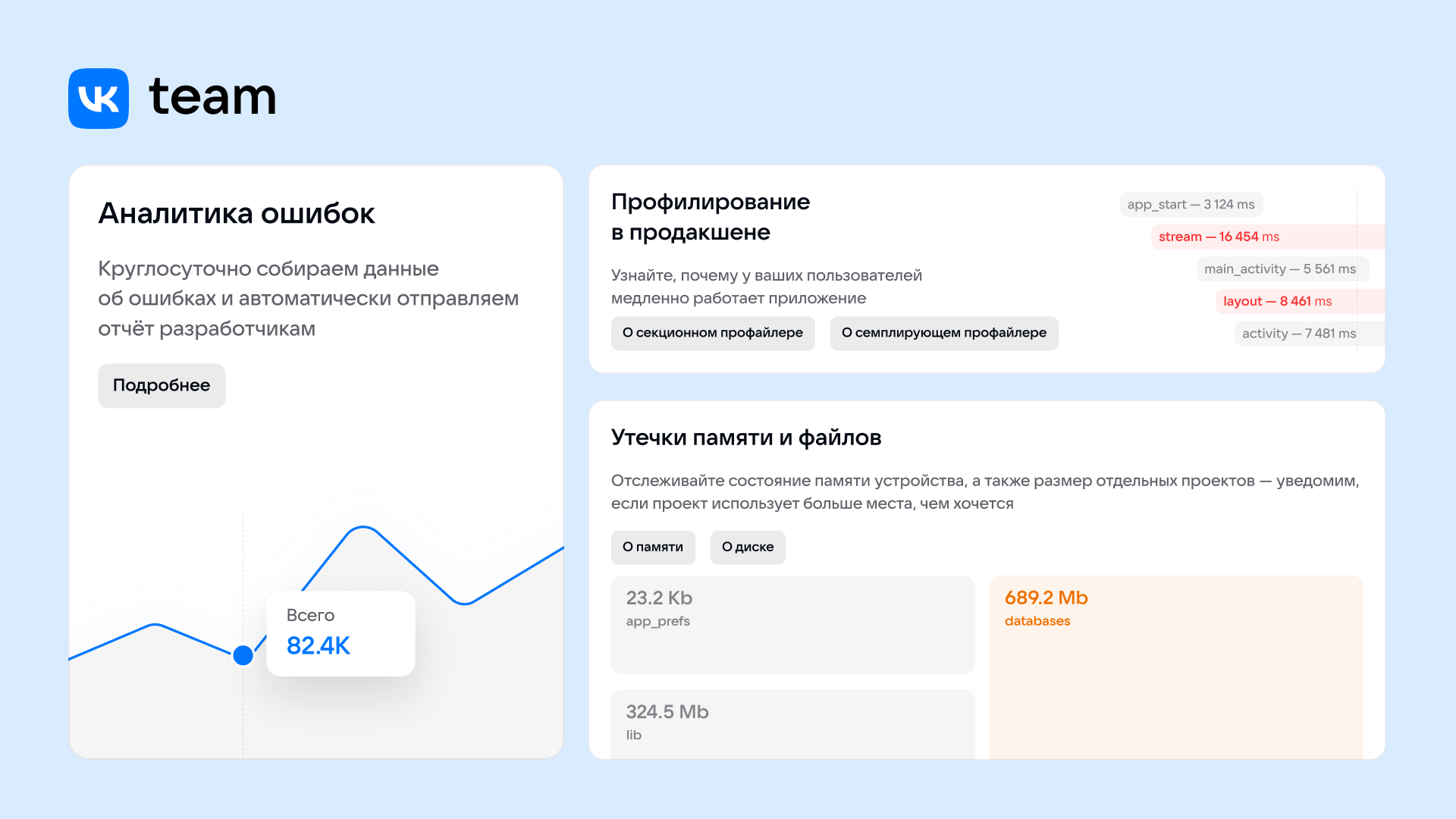 The Tracer service from VK is used by the holding's products — OK, RuStore, Zen, VKontakte, Mail — as well as developers from large Russian companies — Wildberries, 2GIS, Superjob, Okko, SBP, and others. The service is available for integration at apptracer.ru. Kirill Popov, head of the Tracer project, explained: