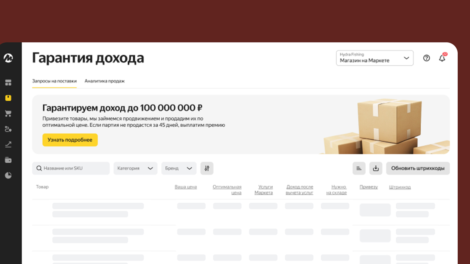 Currently, the “Income Guarantee” function is available to those who have suitable products in the catalog. Gradually, the opportunity will expand its coverage and become available to all sellers.
