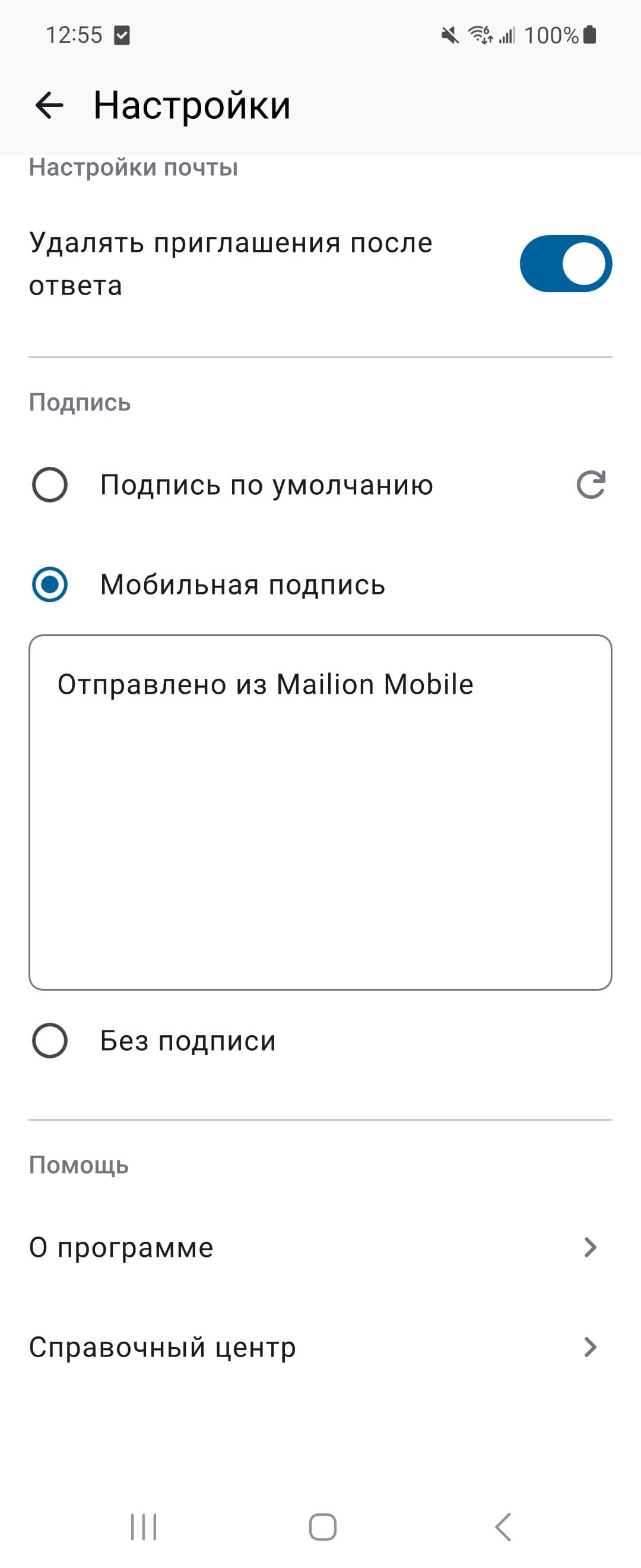 The ability to use your own address book and work with records in it has been added. Emails with an error in the email address are automatically saved to drafts with the label "Not sent". Users can now also choose the type of signature in the outgoing email. By clicking on the "Default Signature" button, the corporate signature set on the mail server is used. It is also possible to create a new mobile signature or send a message without a signature at all.