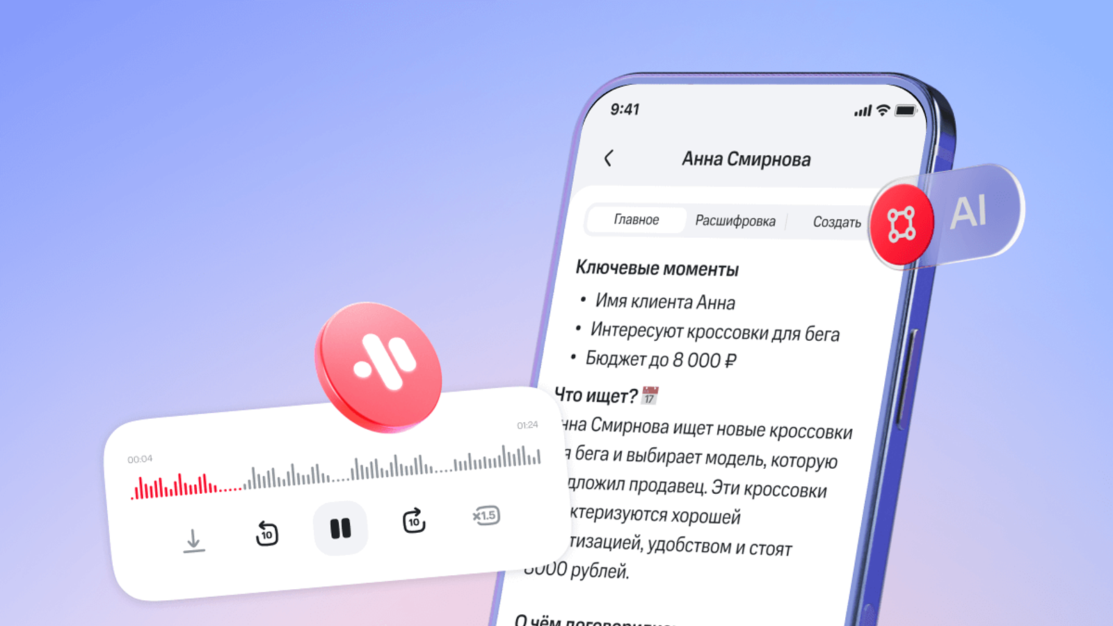 After connecting to the service using "MTS ID", the user gains access to a set of tools for work: automatic recording and transcription of calls, intelligent semantic summaries from AI, contextual search through transcriptions, and a task list linked to contact cards.