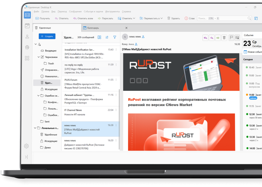 The client's functionality can be expanded both with RuPost's own developments and through integration with other corporate software: messengers, video conferencing services, task managers, AI services, and so on.