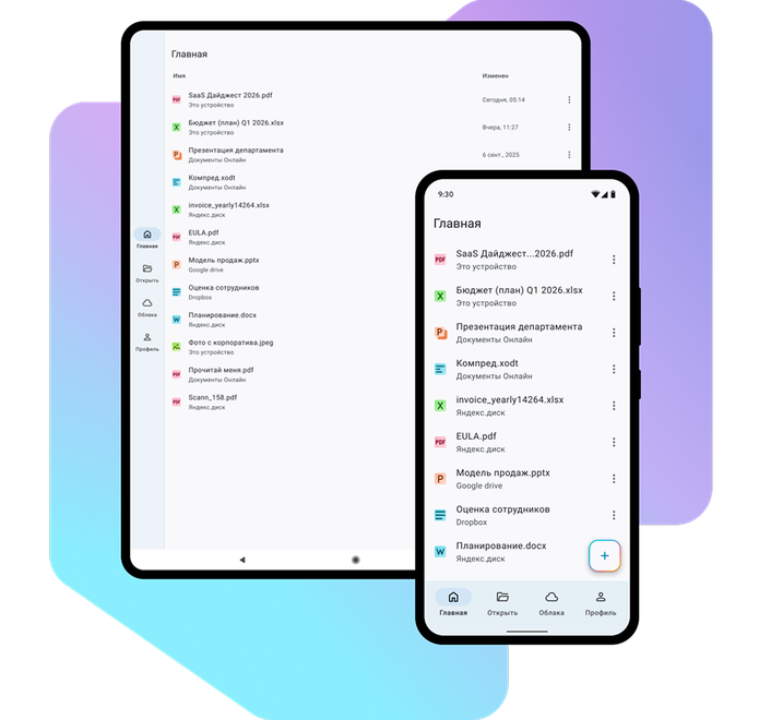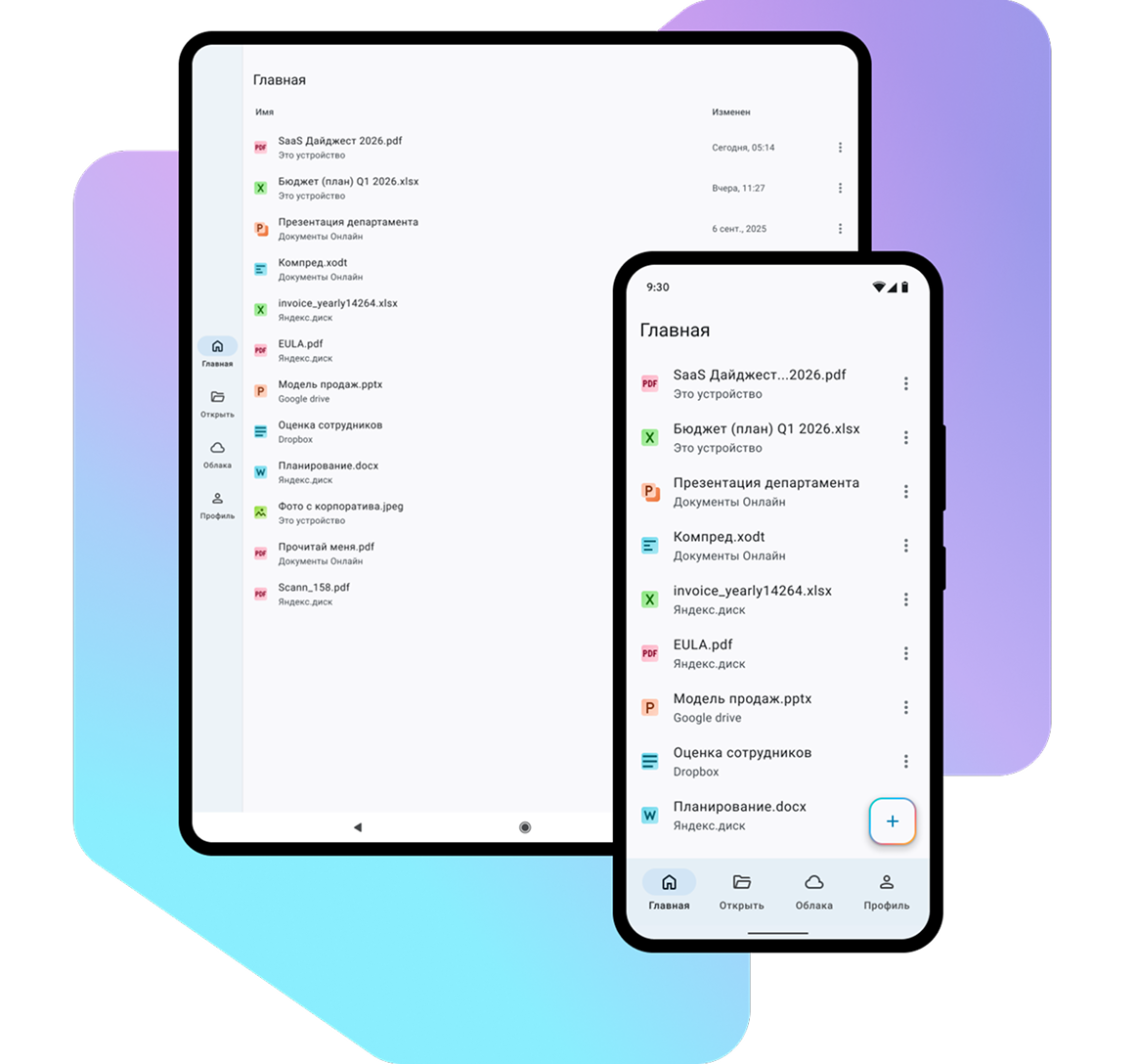 This is a universal and secure corporate mobile application for working with text documents, spreadsheets, presentations, including viewing and editing PDF documents.