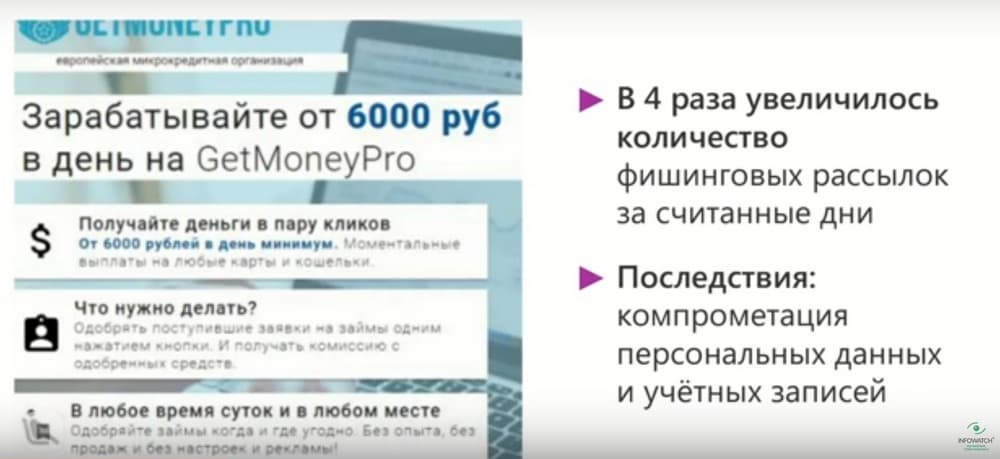 Почему увеличилось количество фишинговых ссылок? Дело в том, что сотрудники начали активно пользоваться корпоративными ресурсами. В том числе электронной почтой из дома. Чем и решили воспользоваться злоумышленники. Имитируя проблемы с доступом к этим ресурсам и пользуясь оторванностью сотрудников от специалистов техподдержки или специалистов по информационной безопасности.