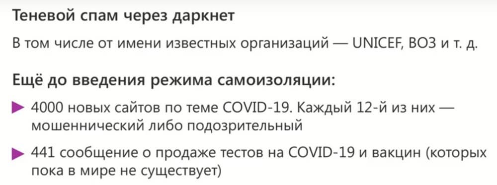 Дело в том, что коронавирус это топовая тема, чем и пользуются злоумышленники. Например, введение пропусков в ряде регионов сопровождалось массовым всплеском предложений по их приобретению. И, естественно, продаваемые пропуска не были легитимными, очень скоро это стало понятно, но определенный доход злоумышленники успели получить, причем не только в виде финансов, но и в виде персональных данных доверчивых граждан.