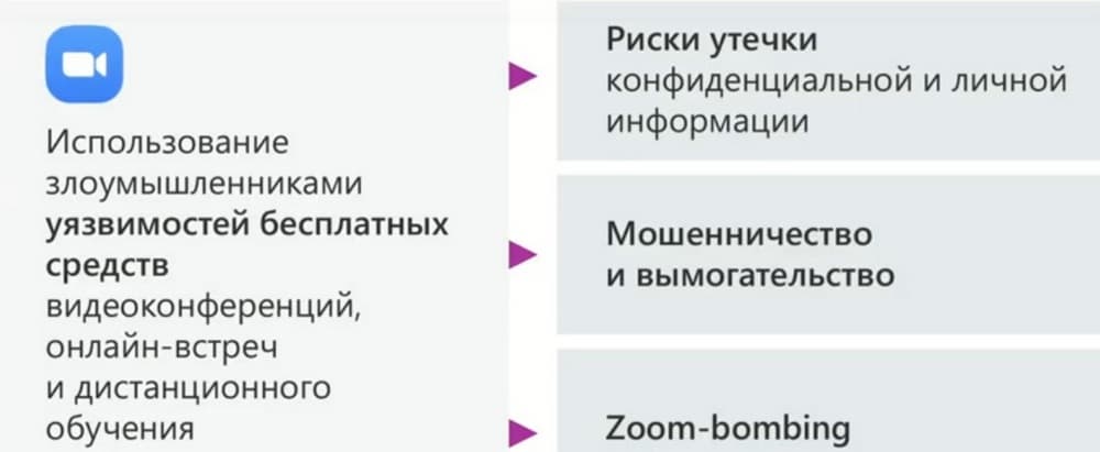 Также этот период стал периодом эксплуатации уязвимости сервисов. В одной статье было дано хорошее определение, что у каждого периода есть свои герои, и героем периода пандемии коронавируса является программа ZOOM.