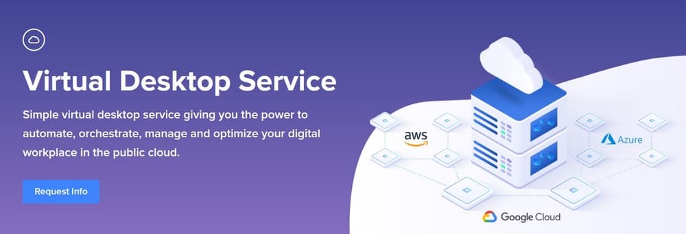 Новая технология вендора NetApp Virtual Desktop Services помогает развертыванию и управлению виртуальными рабочими столами в облаке, предоставляя гибкий сервис для управления инфраструктурой виртуальных рабочих столов (Virtual Desktop Infrastructure, VDI), так и полностью управляемый VDI в качестве сервисной платформы. NetApp Virtual Desktop Services дает возможность быстрого развертывания десктопов в облаке, буквально за несколько часов, в обычных условиях для развертывания которых потребовалось бы 2-3 дня. NetApp Virtual Desktop Services упрощает развертывание и управление средой VDI на выбранной заказчиком инфраструктуре, включая AWS, Azure, Google, Citrix или VMware.