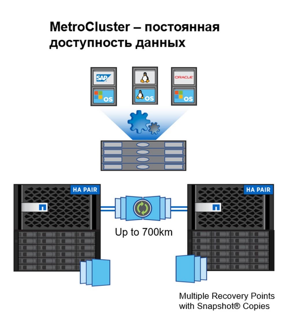 MetroCluster — это технология построения распределенных, кластеризованных систем хранения данных, которая позволяет строить катастрофоустойчивые решения по хранению больших объемов информации и характеризуется простотой в эксплуатации.