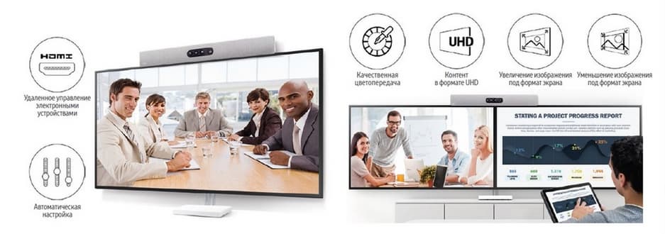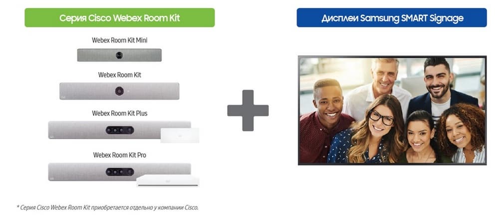 Бизнесу любой направленности нужны сегодня высокоэффективные средства организации совместной работы. Нужны сразу в виде готовых решений, а не разрозненных компонентов для методичной сборки, установки и увлекательной долгой настройки. Удобная интуитивно понятная система управления решений «Webex + один из профессиональных дисплеев Samsung» с комплексным набором функций, допускающих адаптацию к индивидуальным потребностям бизнеса, позволит настроить и подготовить его к работе за минимальное время. Вклад Cisco в готовое решение — обширный опыт организации совместной работы и сетевых коммуникаций; вклад Samsung — отличное качество профессиональных дисплеев, в том числе с разрешением 4K UHD.