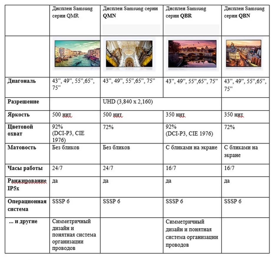 Рис. 2. Характеристики профессиональных устройств SMART Signage в составе решений Webex+дисплеи Samsung