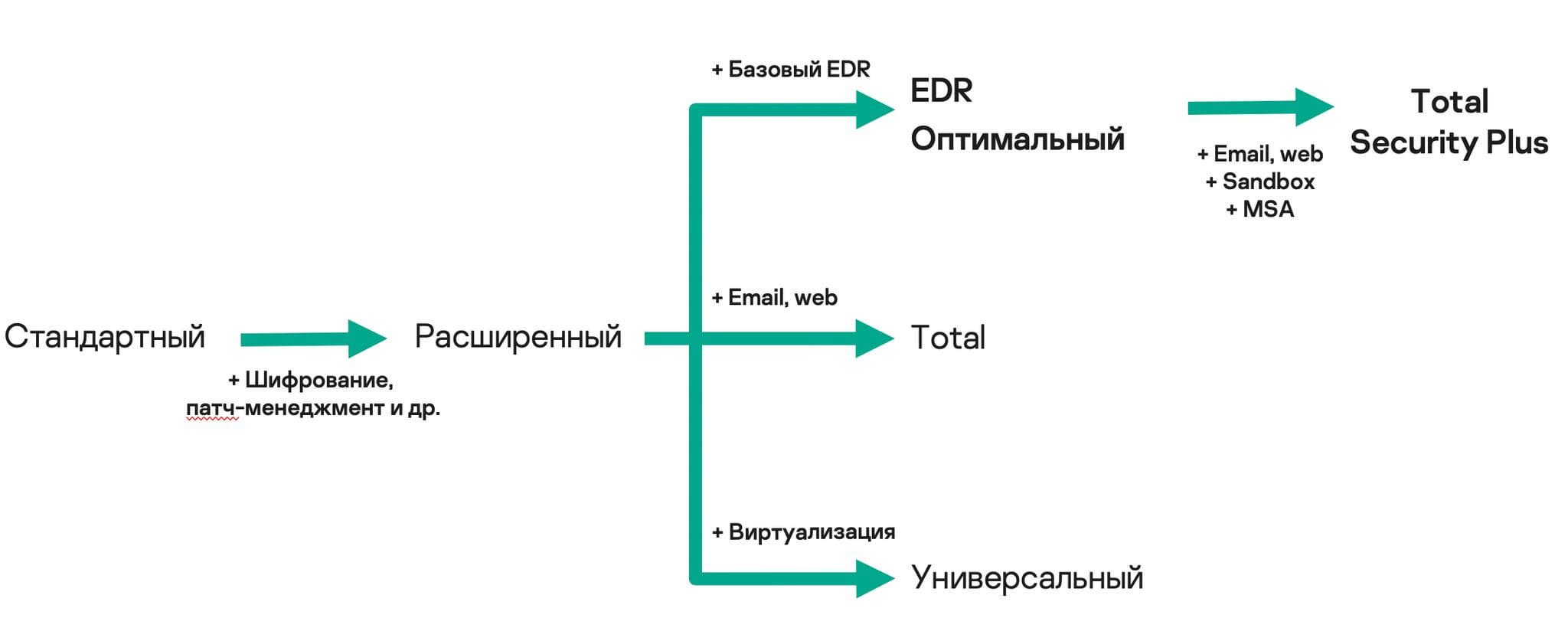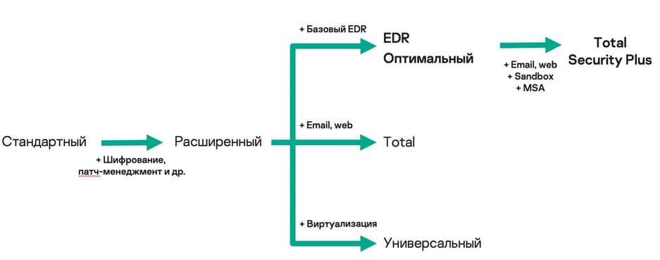 Kaspersky Total Security Plus для бизнеса рассчитан на крупные компании. Это решение в линейке Kaspersky Security для бизнеса включает EDR, песочницу и расширенную техподдержку.