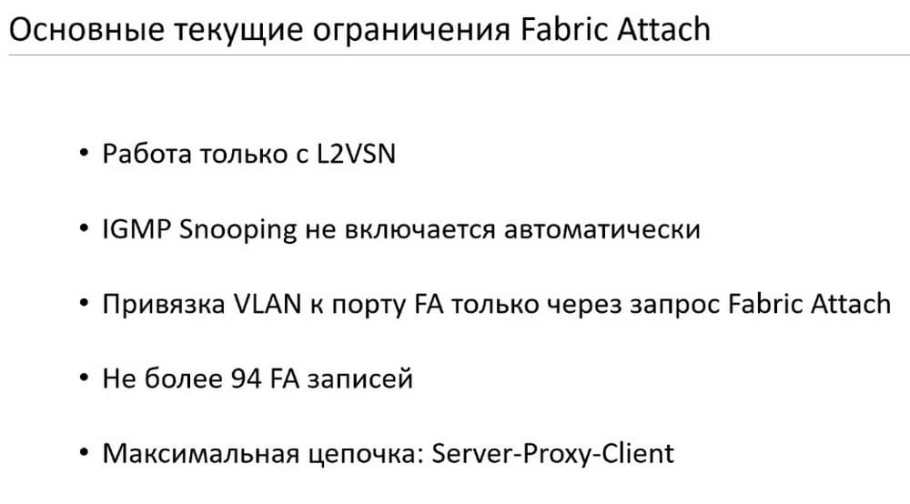 И в заключение приведем основные текущие ограничения Fabric Attach.