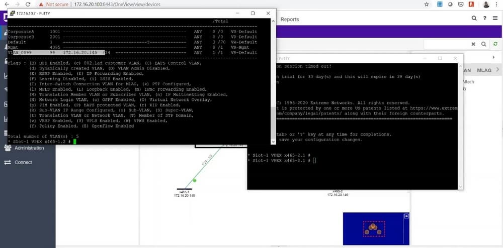 Мы будем перенастраивать только коммутаторы Summit. Для этого воспользуется консольным доступом. Подключаемся к коммутаторам 465-1 и 465-2.
