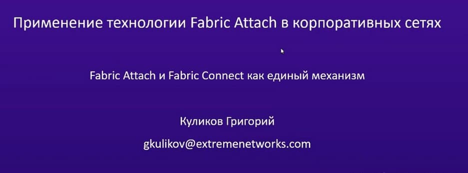 Сегодня Куликов Григорий, системный инженер компании Extreme Networks, расскажет о Fabric Attach и Fabric Connect как едином механизме.