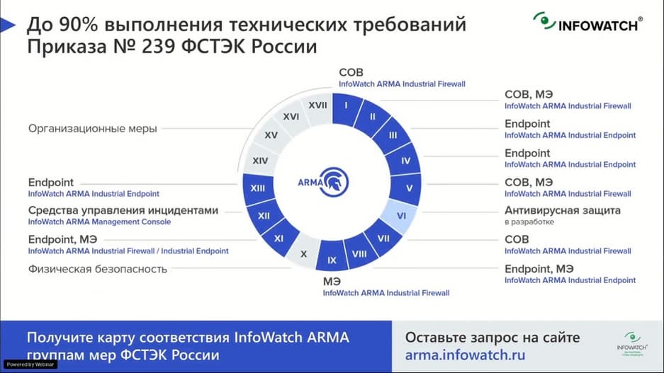 - Какие требования 239 Приказа ФСТЭК России и как закрывает InfoWatch ARMA Industrial Firewall в части сетевой защиты на примере мер: ИАФ, УПД, АУД, СОВ и др.