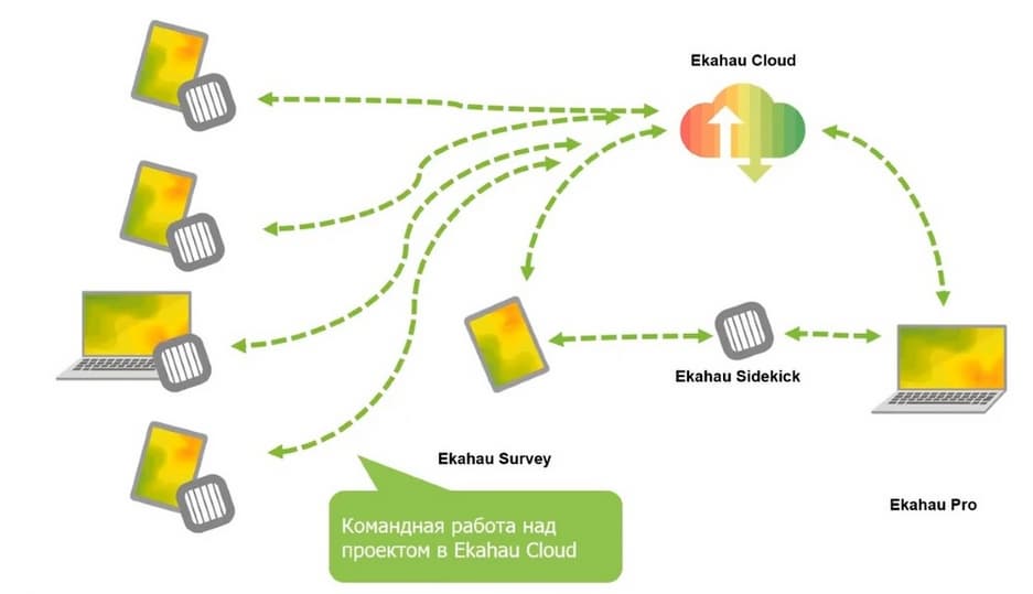 Вендором была введена возможность сохранять результаты исследований в облаке. Есть возможность в офисе подготовить файл проекта, потом загрузить его в облако. Если вам предстоит обследовать крупный объект - стадион или многоэтажное здание, - где одновременно будут проводить обследование несколько человек, все они смогут обращаться к одному файлу из облака и результаты будут загружать в тот же файл в облако. Там произойдет слияние данных. Т. о. это полезный инструмент для коллективной работы.