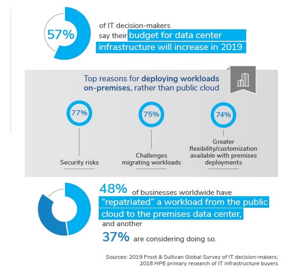 1) Корпоративный центр обработки данных будет продолжать оставаться важной частью цифровой трансформации организации. Даже с учетом популярности публичных облаков, корпоративный ЦОД не уходит с поля. Компании ищут что-то для простого перехода на гибридную среду будущего, в которой локальная инфраструктура может интегрироваться с публичным облаком.