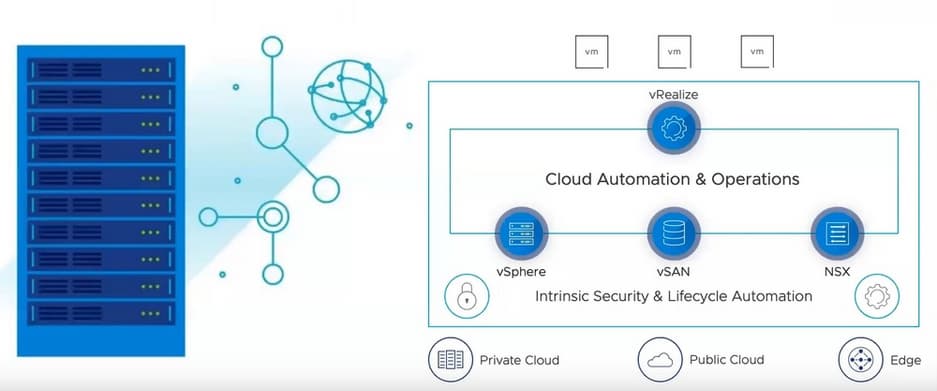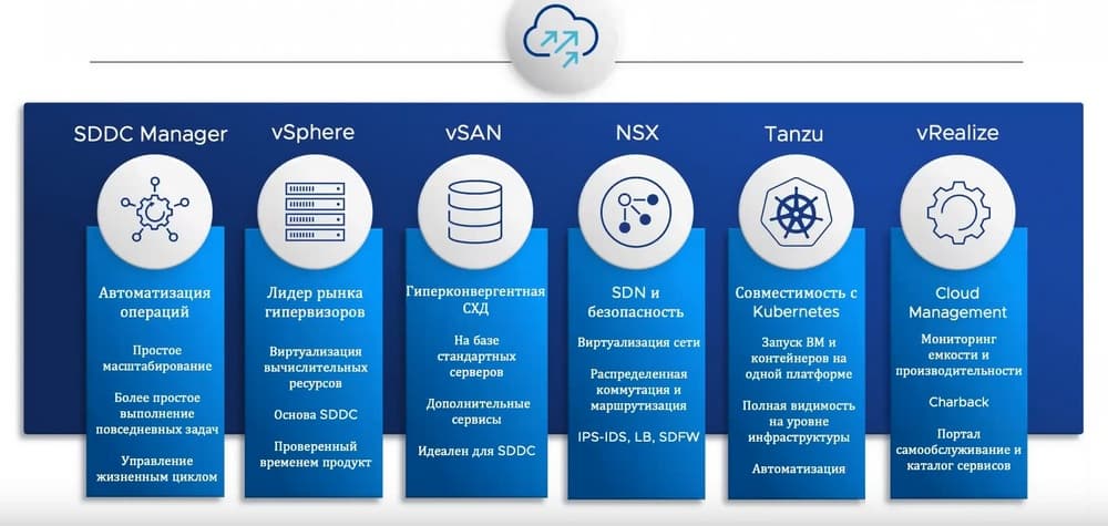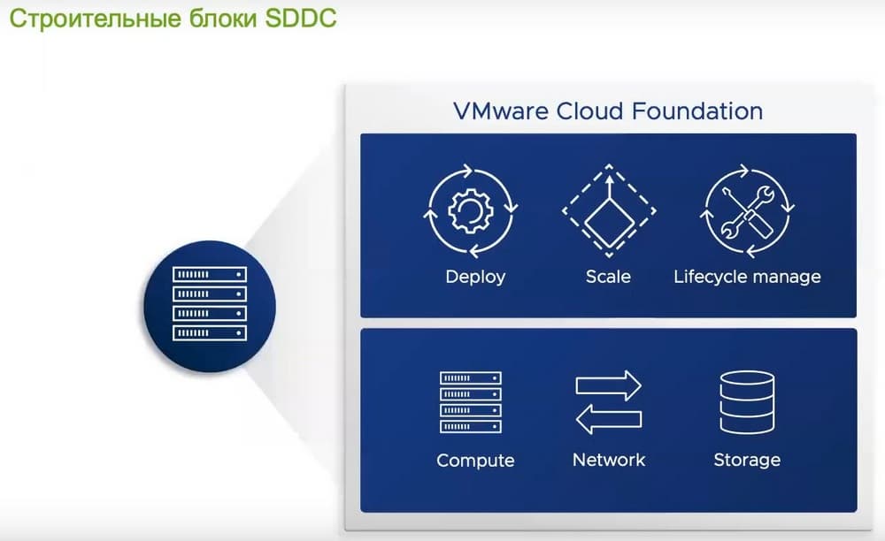 Программно-определяемую инфраструктуру можно построить и самому, взяв для этого продукты VMware: vSphere - виртуализация вычислительных ресурсов, vSan - виртуализация СХД, NSX - виртуализация сети, vRealize – для создания полноценного частного облака и каталога сервисов и продукты семейства Tanzu для работы с контейнерами и другие продукты VMware.