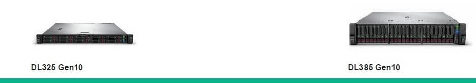 Серверы HPE ProLiant DL Gen10 выпускаются с использованием процессоров Intel Pentium, Xeon-E (DL20), Intel Xeon Scalable2 (DL160, DL180, DL360 и DL380) и AMD EPYC Rome (DL325 и DL385).