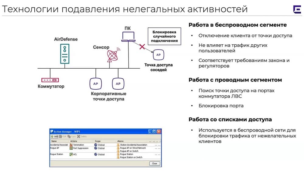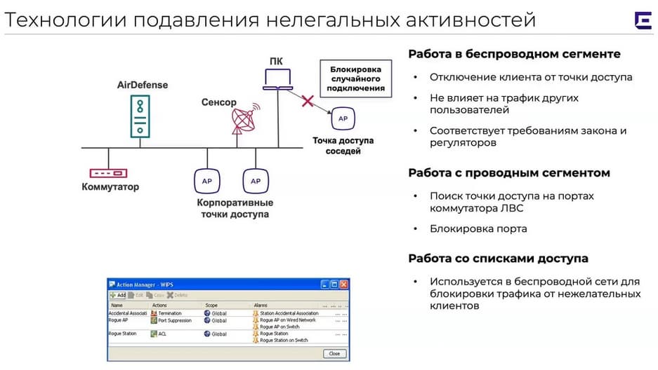 - Возможностях AirDefense для защиты корпоративного беспроводного сегмента.