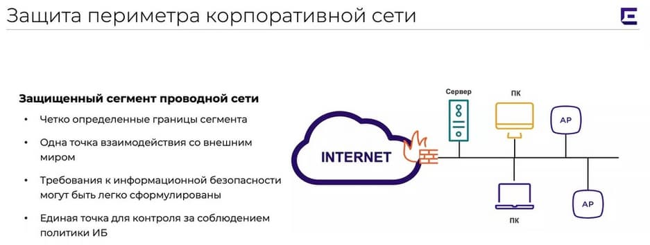 В случае использования проводного Интернета на границе сети привычно ставят межсетевой экран для защиты от потенциальных угроз. Для проводного сегмента есть четкие границы, здесь используется витая пара либо оптика. В случае беспроводного сегмента сети для передачи информации используется радиосреда.