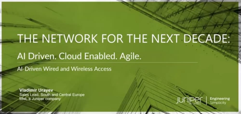 Сегодня речь пойдет о преимуществах революционных технологий Mist AI для беспроводных и проводных сетей и том, как использовать искусственный интеллект для достижения реальных бизнес-результатов. Сегодня вы познакомитесь с концепцией AI Driven Enterprise, посвященной корпоративным решениям с элементами искусственного интеллекта, в рамках которой Juniper предлагает решения с технологией Mist AI. Спикер — Владимир Ураев, менеджер по развитию бизнеса Juniper Mist в России, СНГ и центральной Европе.