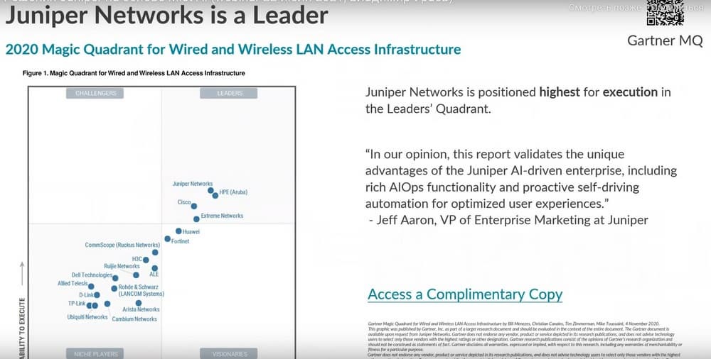 Благодаря этой технологии Juniper вышла в лидеры магического квадранта Gartner Wired and Wireless LAN Access Infrastructure.