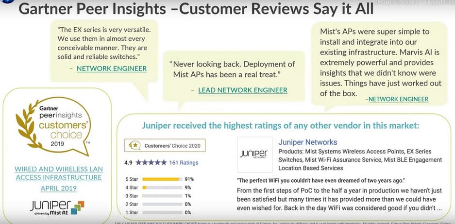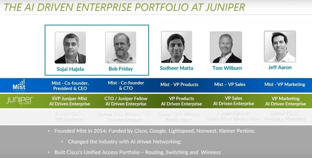 Эти сотрудники ушли, чтобы построить искусственный интеллект для сетевой инфраструктуры. Повторюсь, 2,5 года назад Juniper купила технологию и компанию Mist. И сегодня эти люди управляют Enterprise направлением Juniper.