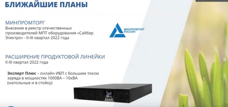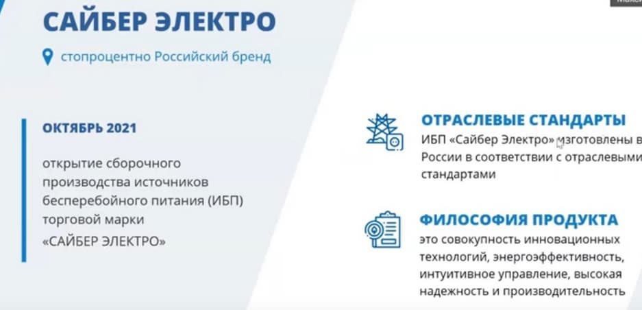 Сегодня Максим Жигаленков, директор по работе с партнерами компании «Сайбер Электро», познакомит с новым брендом российских ИБП – «Сайбер Электро». Здесь мы говорим об импортозамещении, расскажем о складских моделях ИБП под брендом «Сайбер Электро», поделимся планами на 2022 год. В программе мероприятия – сервисная политика, условия сотрудничества и дополнительные возможности для роста и развития вашего бизнеса
