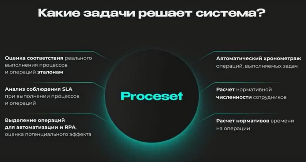 Система Proceset позволяет анализировать бизнес-процессы, искать в них узкие места, находить варианты по сокращению сроков этих процессов, уменьшению количества ошибок, повышению конверсии процесса. Вот несколько результатов, которые были получены на практических кейсах.