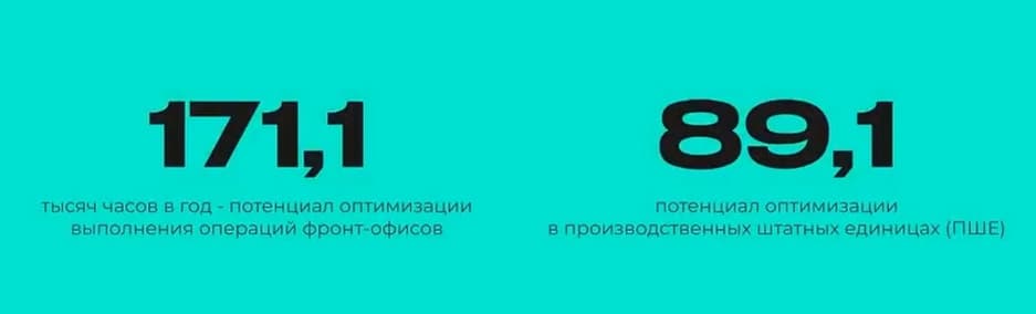 В одном из кейсов мы нашли как уменьшить трудозатраты на 170 тысяч часов в год на обслуживание клиентов во фронтофисах одного из банков за счет автоматизации и частичной роботизации. Мы нашли 15 операций, роботизация которых и дала экономический эффект порядка 170 тысяч часов в год.