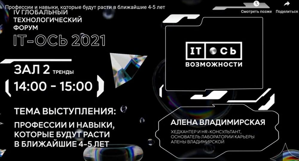 Теперь расскажу серьезнее о том, что происходит в нашем мире. А наш мир с точки зрения рынка труда изменился колоссально. И изменили его несколько вещей. Во-первых, конечно же, его гигантски изменила пандемия. Более того, неправильно говорить, что она его изменила. Она его только начала менять, и в ближайшее время будет менять его критически. Во-вторых, вследствие пандемии критически стали меняться отрасли. Те отрасли, которые росли, расти перестали. Те отрасли, что были, что называется, в загоне, начали расти. Т.е. в результате ландшафт мира профессий изменился очень сильно. В -третьих, изменилось потребление. Потребление профессий меняется краеугольно. И в результате, все то, о чем мы говорили 5-10 лет назад о том, что будет востребовано, практически ничего не сбылось. За исключением того, что будет востребовано ИT. Но это базовая точка. Теперь давайте говорить о том, что происходит. А происходят следующие вещи. У нас в результате последних тенденций появился разнонаправленный мир. Если мы сейчас посмотрим данные (я буду давать данные по России), то увидим, что у нас, если мы возьмем рынок труда в целом, вообще не хватает примерно 12% работающих рук. Если мы говорим о рынке белых воротничков, т.е. то, что раньше называлось офисными сотрудниками, это могут быть не обязательно управленцы, это могут быть еще и эксперты, например, программист - это эксперт, то у нас в целом не хватает от 6 до 8% от трудоспособного населения. Это огромное количество, просто огромный дефицит. Но с другой стороны, если мы сейчас честно посмотрим на текущий рынок труда, то увидим чудовищные цифры с точки с точки зрения рынка белых воротничков. У нас сейчас по-разному считают от 17 до 21% в ближайшие 5 лет этих людей потеряют работу, если они не будут очень быстро адаптироваться. Это те специалисты, чьи навыки на сегодня бизнес считает не актуальными. И вот у нас с одной стороны не хватает людей, а с другой стороны происходит следующая история: те люди, которые сейчас работают, причем есть ключевая вещь, она про то, что чем дальше мы от центров компетенции, а центры компетенции это у нас чаще всего большие города. Ну пусть даже это не очень большой город, но город с хорошим университетом, с хорошим рейтингом, либо учебным заведением с хорошим рейтингом. И второе - с большими центрами потребления людей. Вот второе сейчас будет уходить. А учебное заведение, университет, является ключевой историей. Так вот, чем дальше человек находится от этого центра, если мы говорим о белых воротничках, тем процент этого выше. Т.е. в Москве или в Казани, или в Новосибирске процент этих неактуальных людей критически ниже, чем, допустим, в моей родной Вологде.