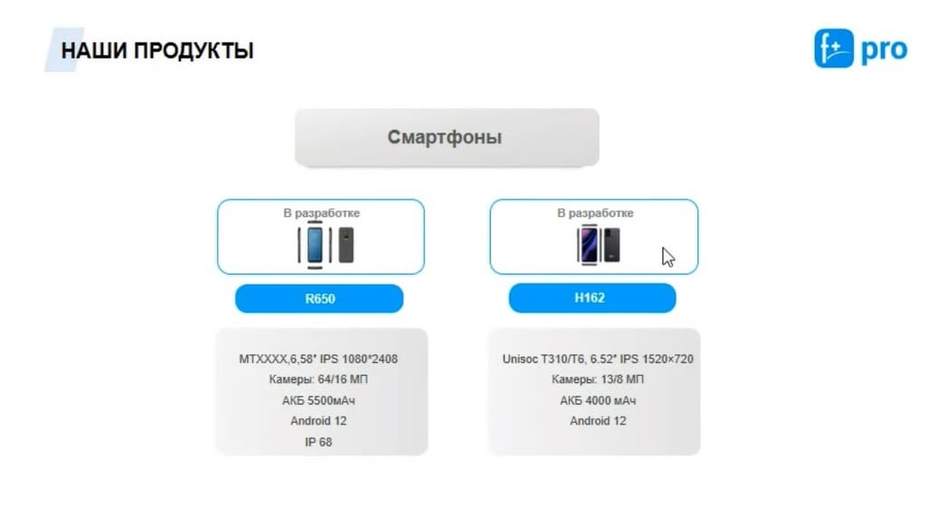 По смартфонам в перспективе планируется разработка еще двух моделей на базе Mediatek, это в планах на конец 2022 года, либо на начало 2023 года.