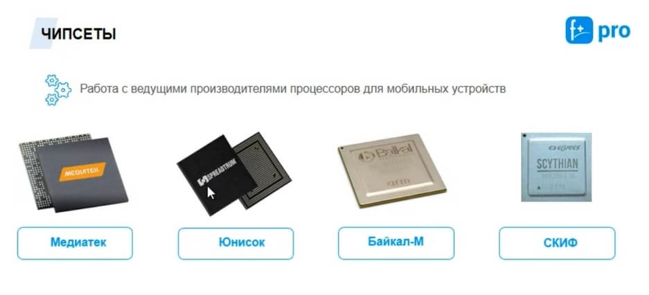 Поэтому происходил перегрев, потеря любого сигнала и потом либо перезагрузка, либо просто отключение устройства. Вы знаете, что активность в ноябре-декабре-январе была безумная во всех СМИ. А сейчас мы видим, что вся эта история плавно уходит на нет. Потому что требуется доработка процессора, а когда он появится, пока никто об этом не говорил. Для общего понимания, «Ф-ПЛЮС МОБАЙЛ» ведет диалоги со всеми поставщиками и фабриками. Есть выходы на всех чипмейкеров. Я акцентирую ваше внимание только на самых основных. Честно говоря, что на СКИФе, что на Байкале смартфоны или планшеты 2022-2023 гг ожидать не стоит.